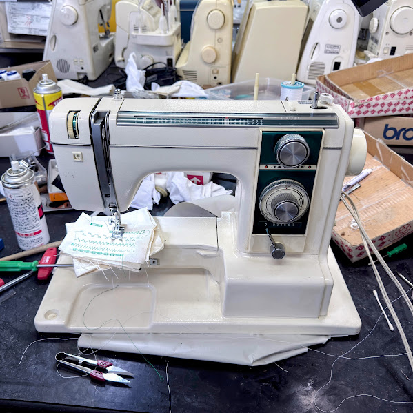 ジャノメミシン エクセル813【症状】駆動ギヤ割れでギヤ交換分解調整・各部調整クリーンアップ作業糸調整・全体のメンテナンスミシン直りました