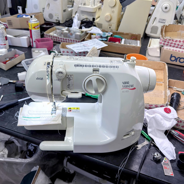 ヤマザキミシン AG-003【症状】糸立棒の破損で交換糸調子不良分解調整・各部調整クリーンアップ作業糸調整・全体のメンテナンスミシン直りました