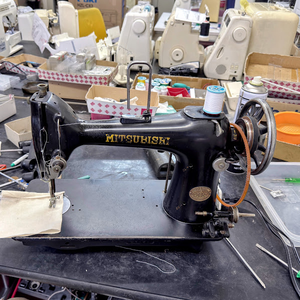 MITSUBISHI 足踏みミシン【症状】上糸が釜に引っかかり下糸が上がってこない釜のタイミング調整分解調整・各部調整糸調整・全体のメンテナンスミシン直りました